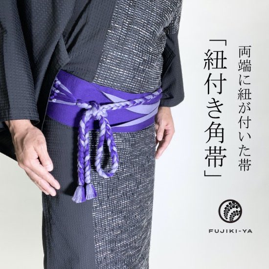 初心者が一番挫折する「帯結び」。これを一瞬で解決するのが、藤木屋で大人気の『紐付き角帯』です。難しい結び方は一切いりません。紐を結ぶだけで、ベテランのような本格的な着姿が完成!これなら、届いたその日に一人でお出かけできます。