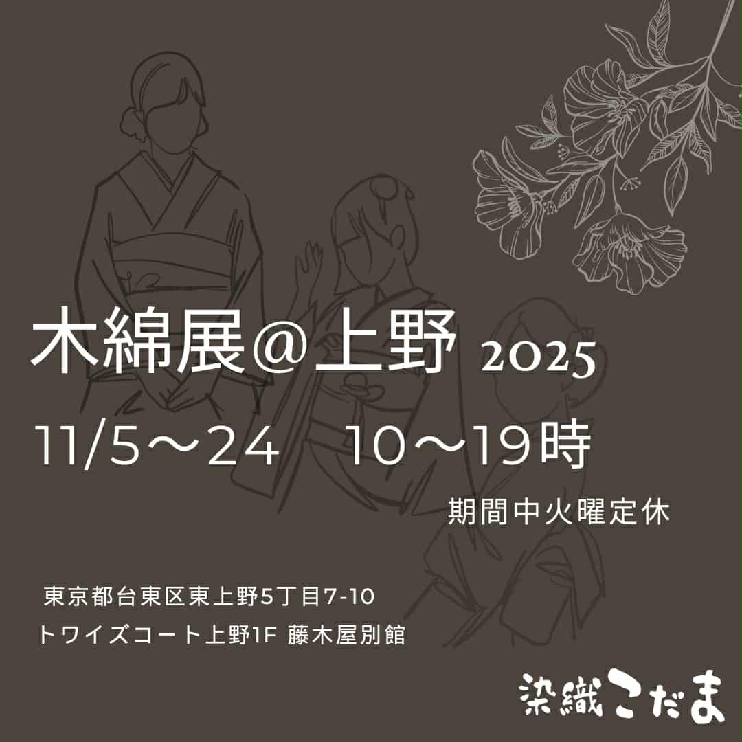 【オーダーメイド綿着物】の 『こだま』さんが藤木屋 別館に出店‼️ 宮崎県の『染織こだま』さんが 【11/5(水)〜11/24(月)】の約三週間、ご出店いただきます^^ 昨年も開催し、 大変ご好評につき、今年も開催‼️ 綿着物をオーダーしたい方は 是非この機会にご来店くださいませ! ◆上野藤木屋【常…